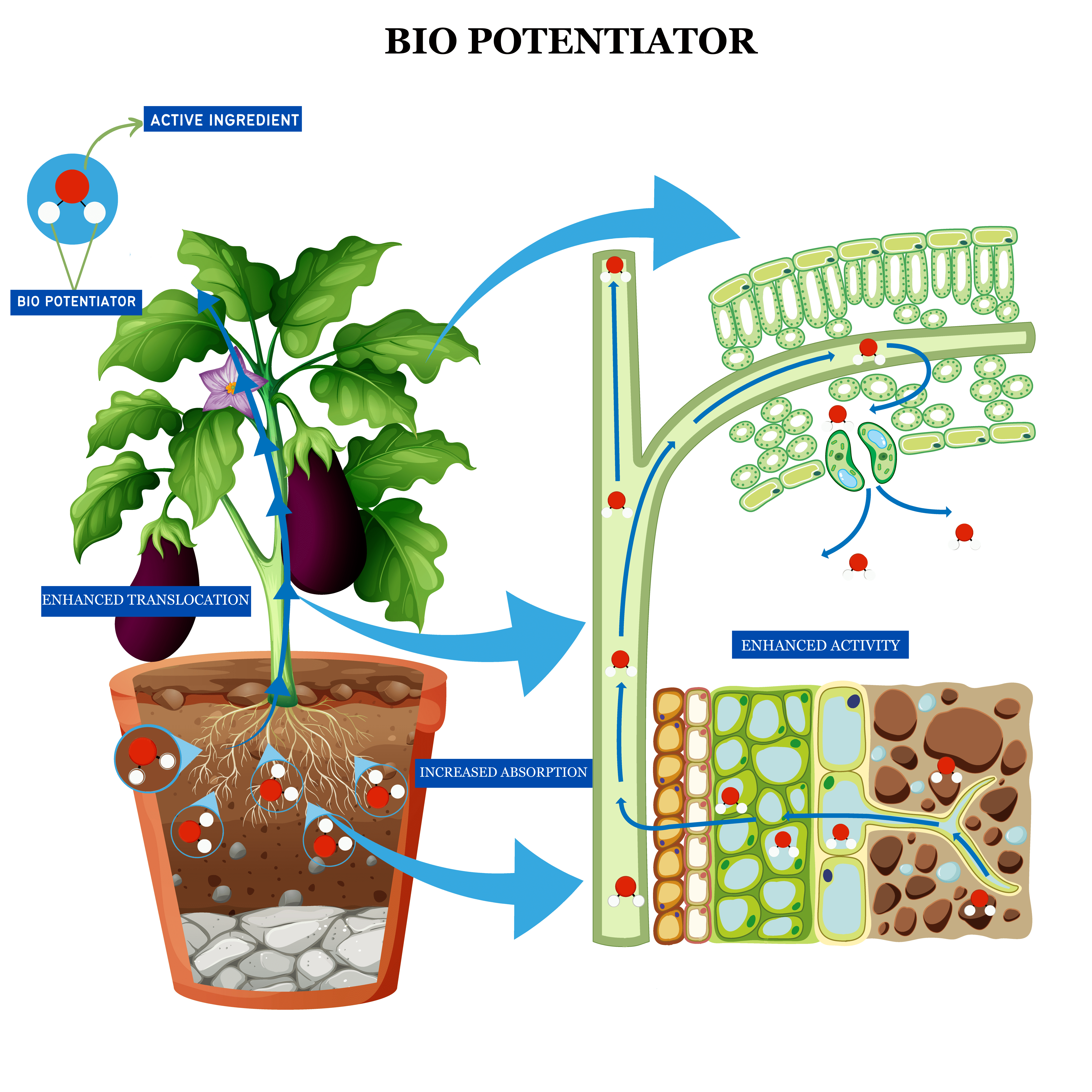 Paratantra or bioenhancers are crucial for improving the bioavailability and efficacy of many actives. Different formulations based on liposomes, marinosomes, niosomes, and lipid-based systems can significantly enhance the rate of release and the ability to cross bio-membranes. For instance, Vitamin D3 can enhance the absorption of Calcium and increase its bioavailability but many Calcium formulas lack Vitamin D3. Maharasa Ag Technicals contain Paratantras, which act as bioenhancers and improve the translocation and absorption of actives, including fertilizers and micronutrients.